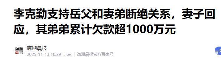 潇湘晨报——李克勤支持岳父和妻弟断绝关系,妻子回应,其弟弟累计欠款万元